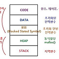 프로세스는 컴퓨터 내에서 실행 중인 프로그램을 뜻한다. 크게 코드 영역, 데이터 영역, 힙 영역, 스택 영역으로 구분되어 있다. 메모리 할당이 고정되는 영역 데이터 영역 : 전역변수들을 수록시킨다 .bss .data 같은 영역이며 전역변수 뿐만 아니라 static변수(정적변수)가 지정되는 영역이다. 초기화가 되지 않은 변수들은 .bss에 저장되어있다. 코드 영역 : 실행 파일을 구성하는 명령어들이 올라가는 메모리 영역. 함수, 제어문, 상수 등이 여기에 지정된다. 실행 중 메모리가 할당되는 영역 데이터 영역 : 전역변수들을 수록시킨다. 스택 영역 : 함수의 매개변수, 복귀주소와 로컬변수(지역변수) 같은 임시적인 자료를 가짐. 할당되었다가 함수의 종료시 반납되는 공간 힙 영역 : malloc(), call..